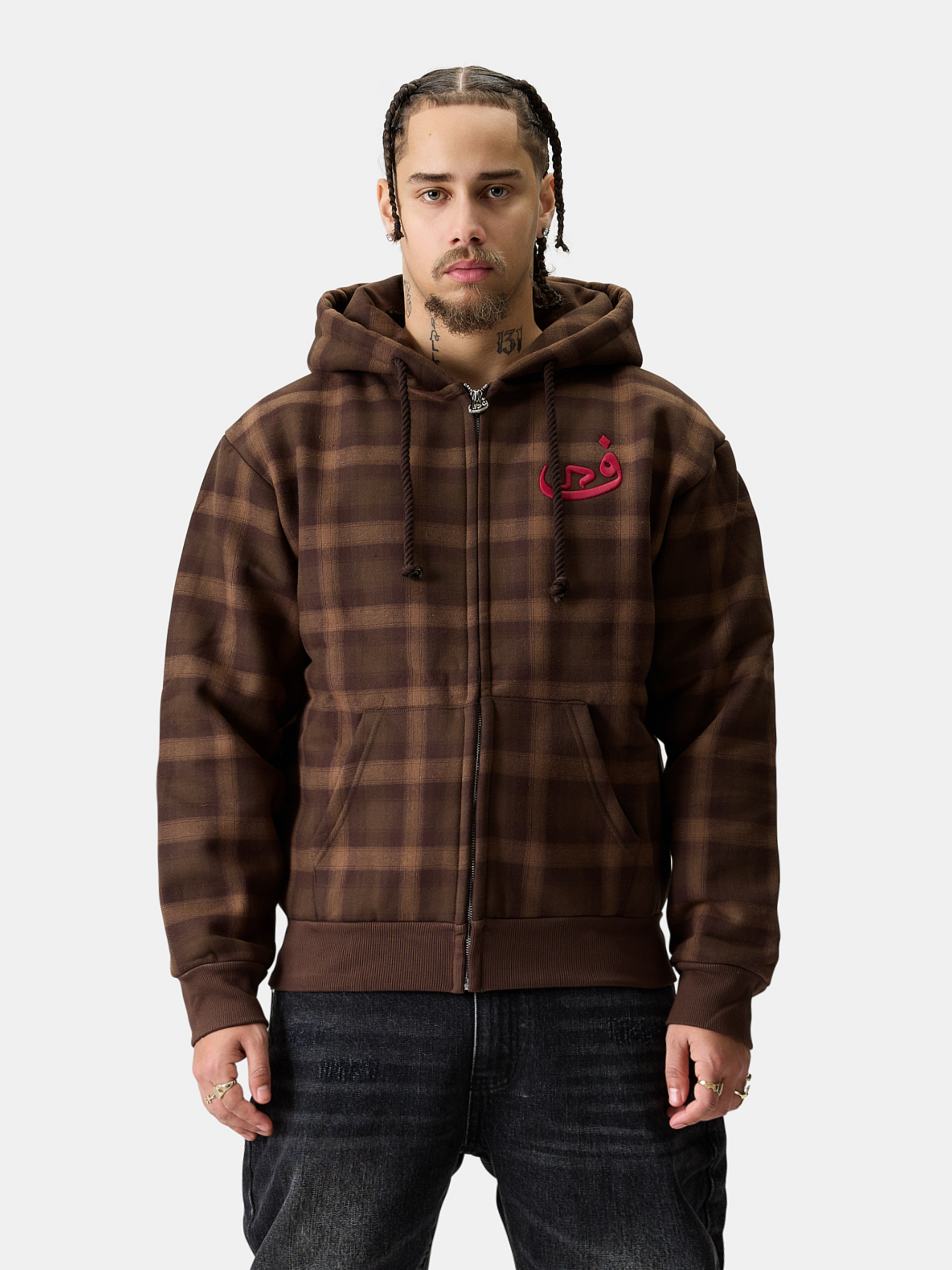 Zip Hoodie Plaid - Brown